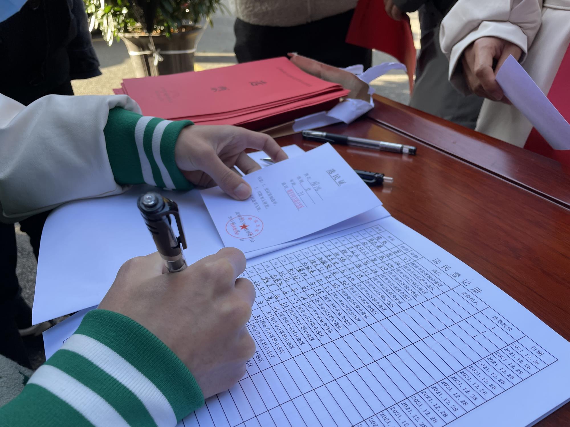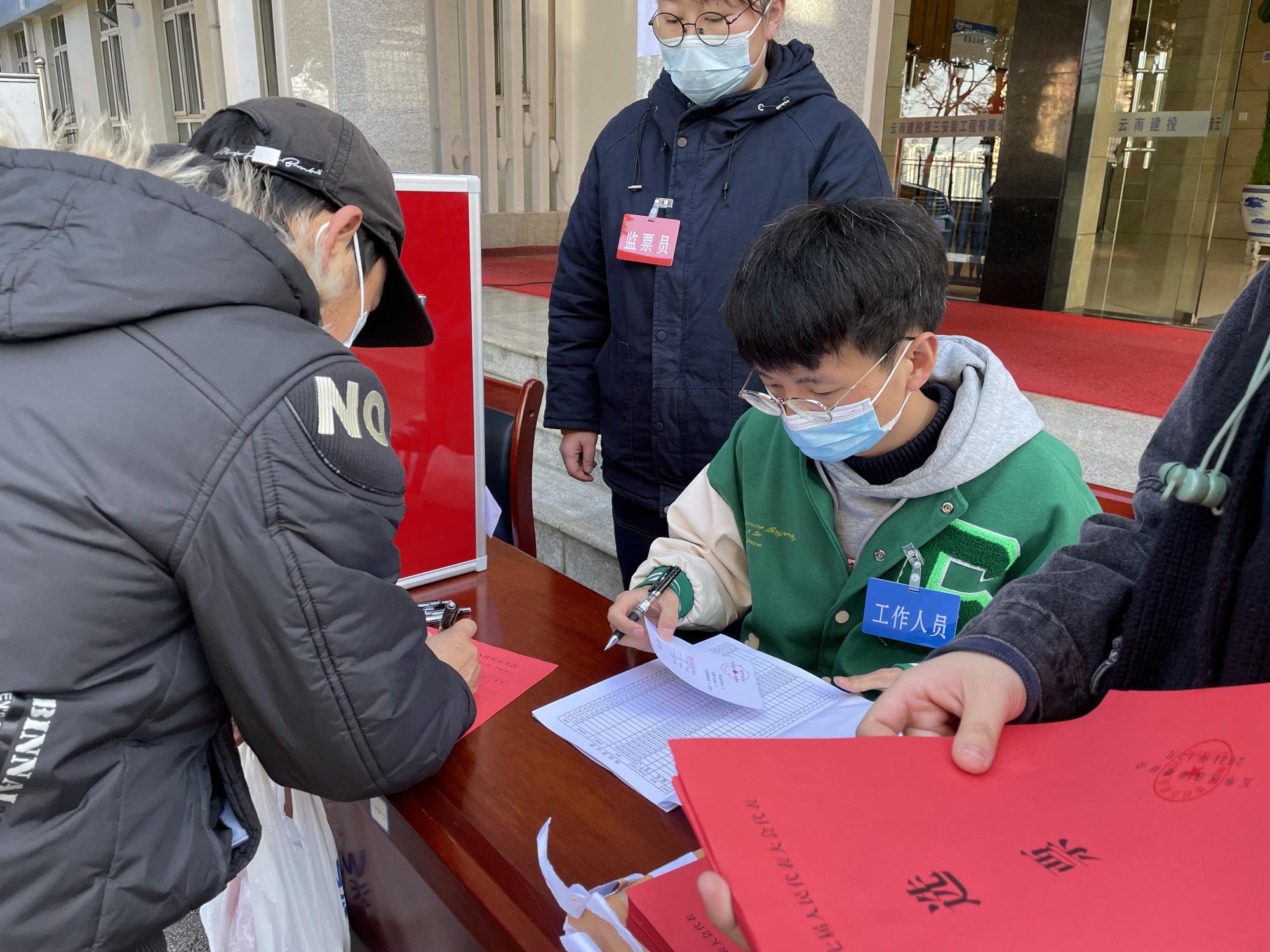 按照观音寺社区联合选区选举小组工作安排,采取设投票站的方式进行投票选举,选民凭选民证或身份证核实选民资格后领取选票后进行投票选举。公司后勤保卫中心根据社区工作安排,分别在公司机关大楼门前和一分公司家属区设置投票站。
